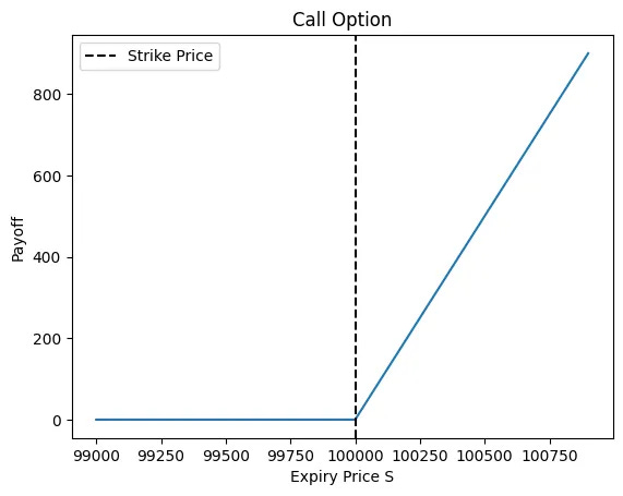 Therefore for a call with strike price K the payoff is: max(S-K, 0)